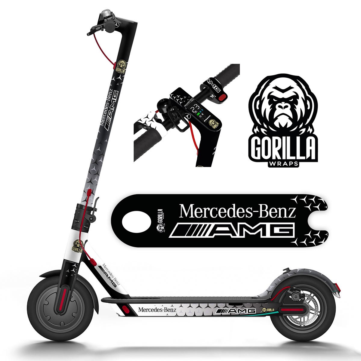 Gorilla Wraps te ofrece por primera vez vinilo para patinetes laminado fundido (el mismo material que se emplea en el vinilado de los coches, con una fuerza de pegado de 90 Newtons), es con diferencia la gama mas alta en vinilos para patinetes eléctricos. Este adhesivo garantiza una fijación sin necesidad de pistola de calor. Con un grosor de 300 micras y bases antideslizantes efecto arena de 500 micras, son los más resistentes del mercado. Garantía 5 años contra UV y despegue.